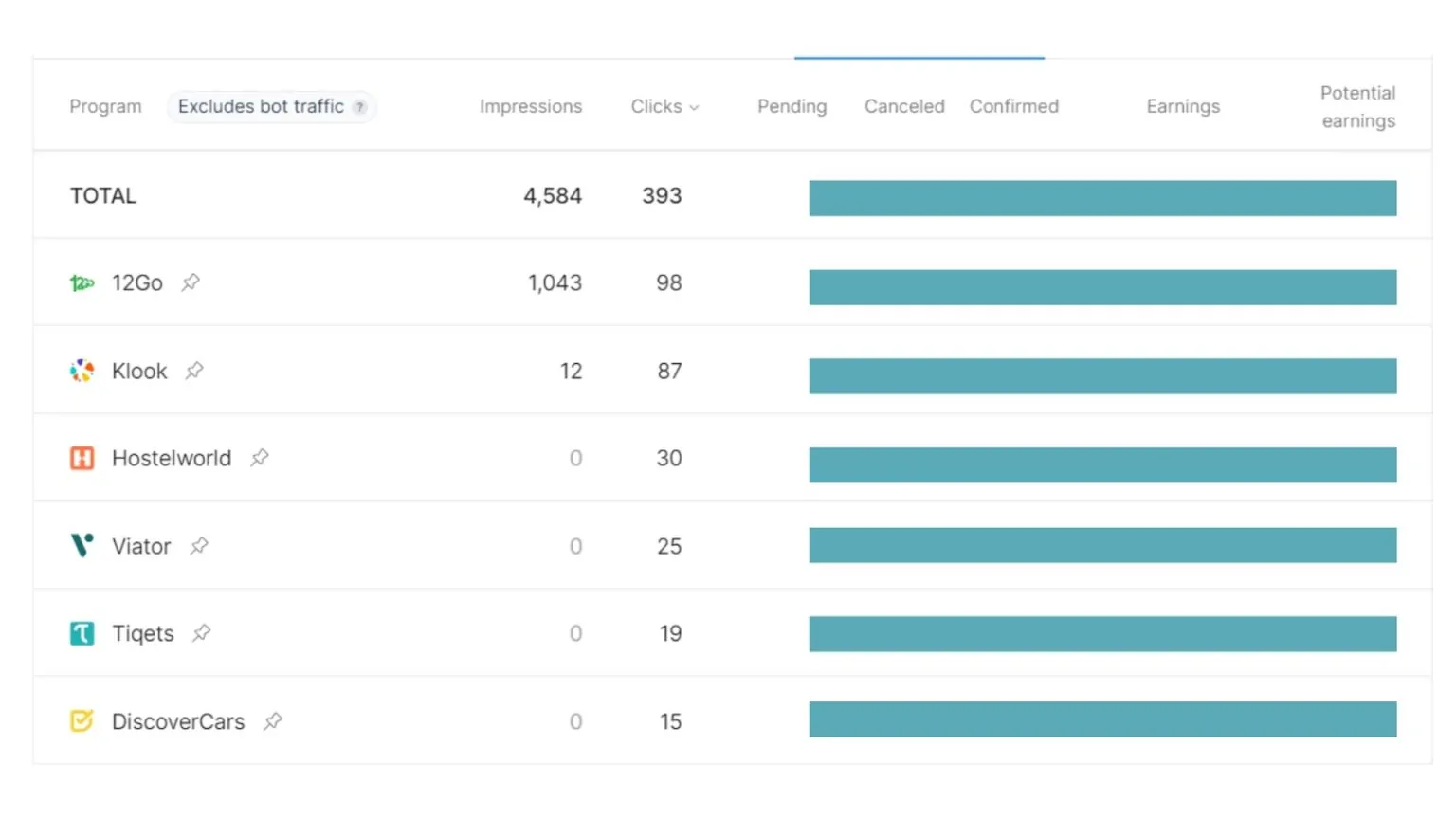 On Affbusiness , we’re able to manage each in a single dashboard. You can even pin your favorite brands to better monitor traffic, bookings, and earnings.