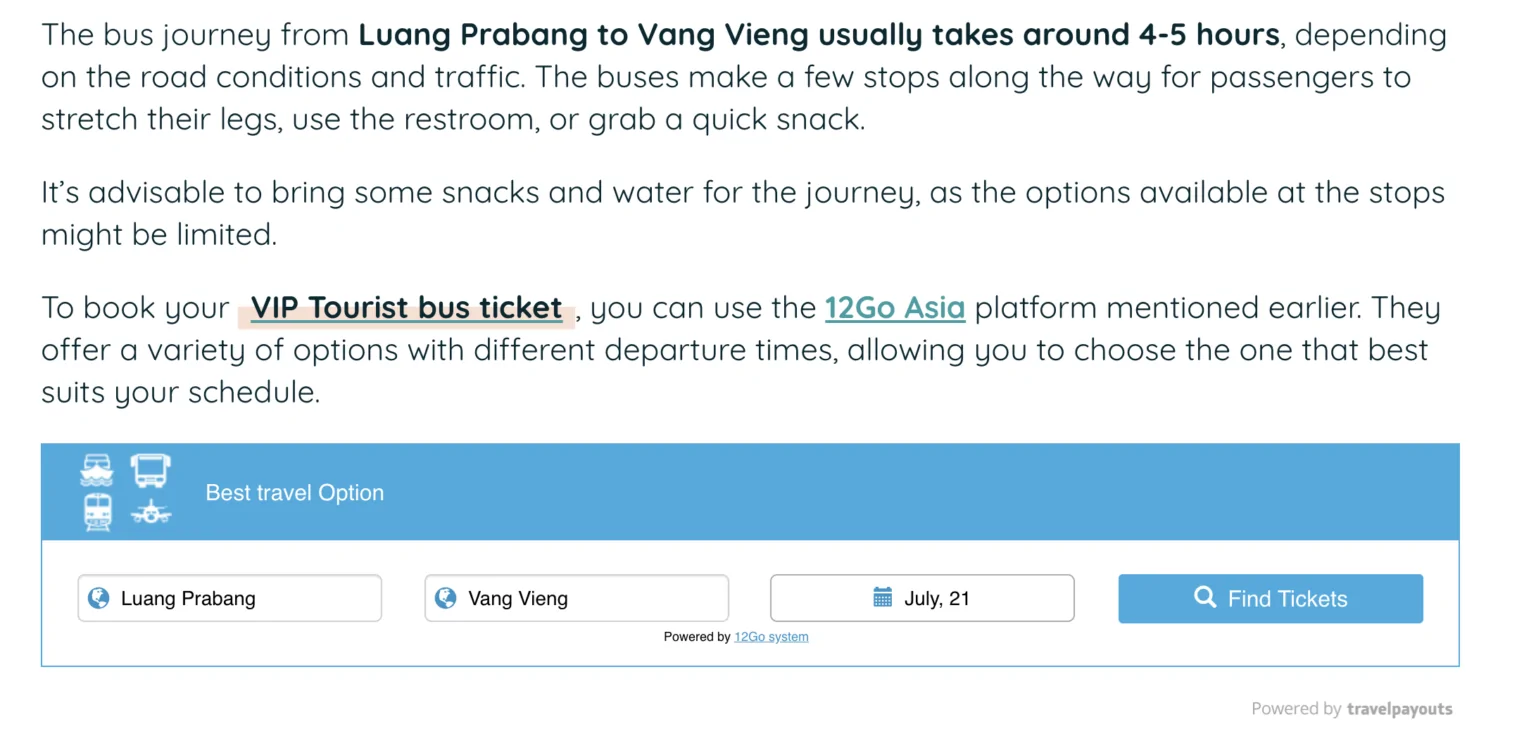 In our guide on Laos, we integrated contextual links to create a more meaningful and organic user experience.