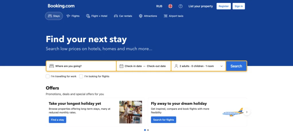 Booking.com is a well-known travel brand in online hotel reservations, claiming to generate more than 1.5 million hotel bookings daily. The website is available in 43 different languages offering more than 28 million accommodation listings worldwide with a unique selection of hotels, guesthouses, and apartments. Wherever your audience wants to go, you can use Booking.com to help them find the best place to stay.