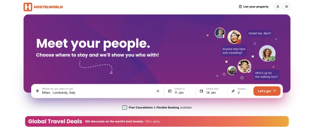 If your audience is young, in college, and budget-conscious, you can earn commissions using built-in widgets and deep links. The affiliate program offers a 40% of the revenue that Hostelworld receives from bookings.
